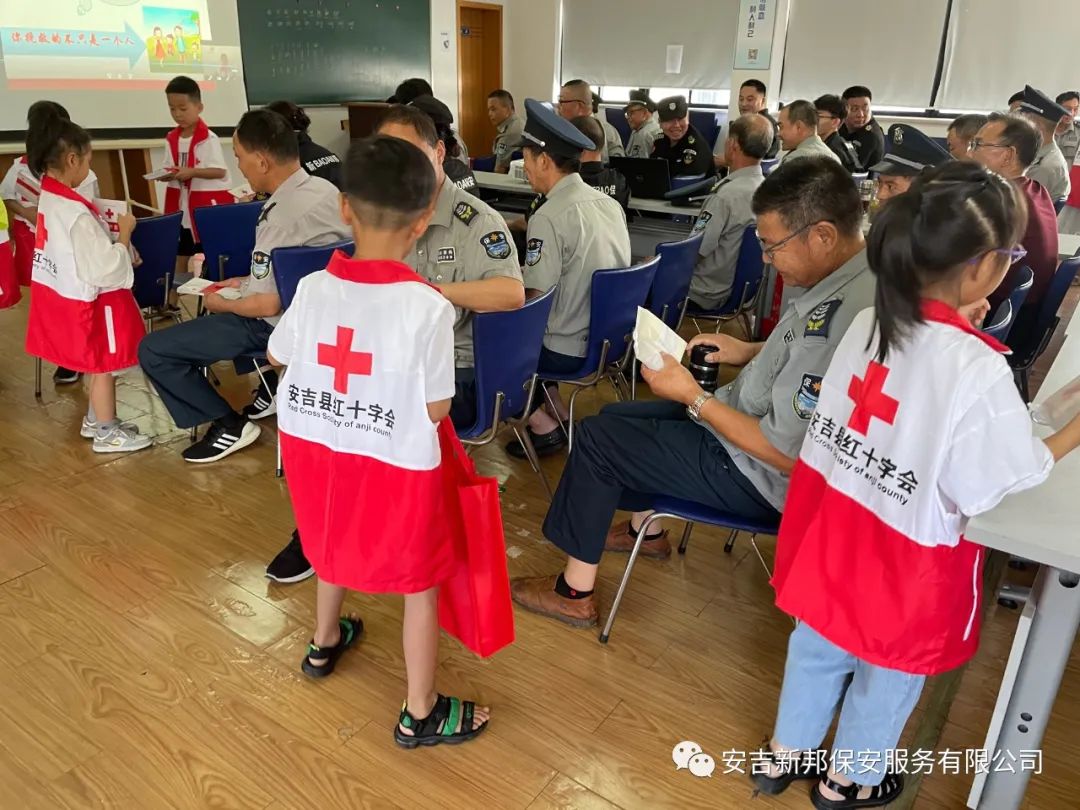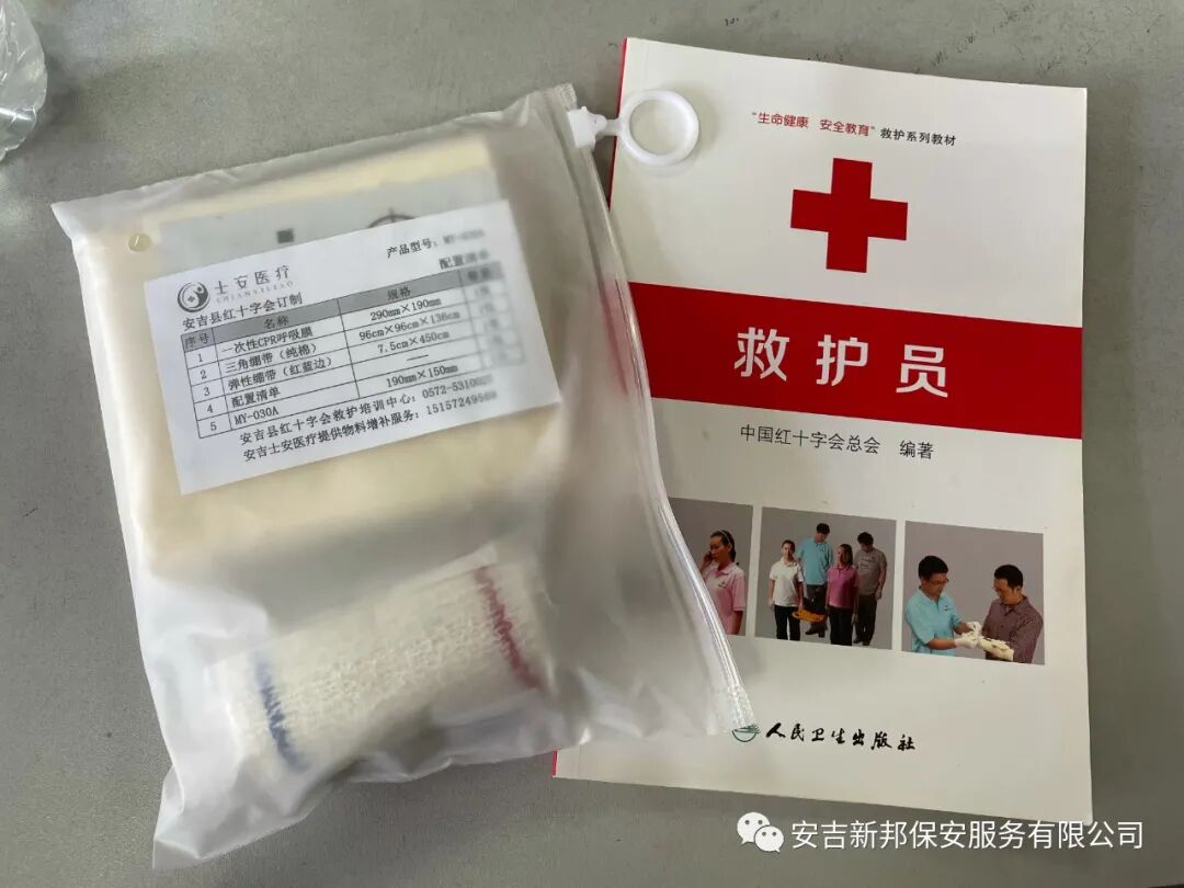 此次培训活动中,安吉城北二小的学生们也参与其中,先后向我公司员工发放红十字救护员宣传册以及应急护理包。