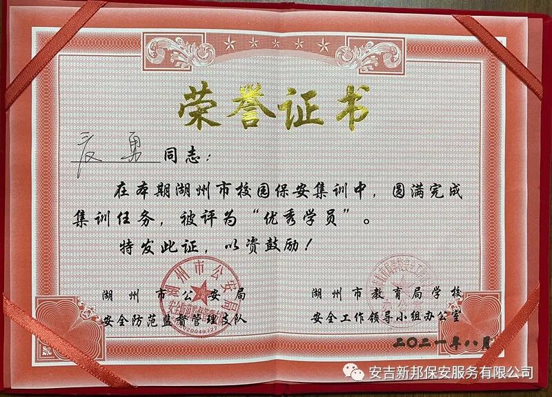 根据湖州市公安局、湖州市教育局有关校园安全相关文件精神及相关指示,为全面贯彻落实习近平总书记等中央领导同志关于加强校园安全风险防控的一系列重要指示精神,进一步提高全市校园保安员业务能力,提升校园安全安防整体水平,根据《湖州市贯彻<加快推进全国中小学幼儿园安全防范建设三年行动计划>实施方案》通知精神,湖州市公安局、湖州市教育局决定联合开展2021年湖州市校园保安员实战技能集训,我公司参加集训时间为2021年7月30日至8月1日,为期三天;地点为长兴教育基地,参训人数为339人。